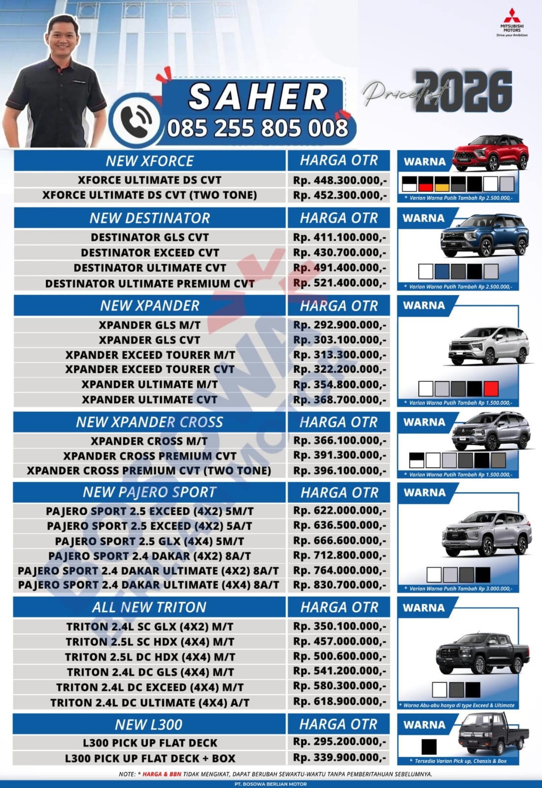 | TRITON SC GLX 4X2 M/T | IDR 350.100.000 |